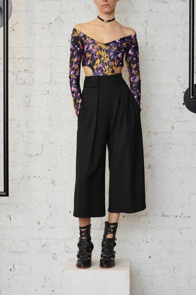 Pure bias cut silk pants, cut on the straight grain spiralling around the leg to create a very flattering, leg skimming comfortable cut. Asymmetric silk skirt with large pocket overlay.